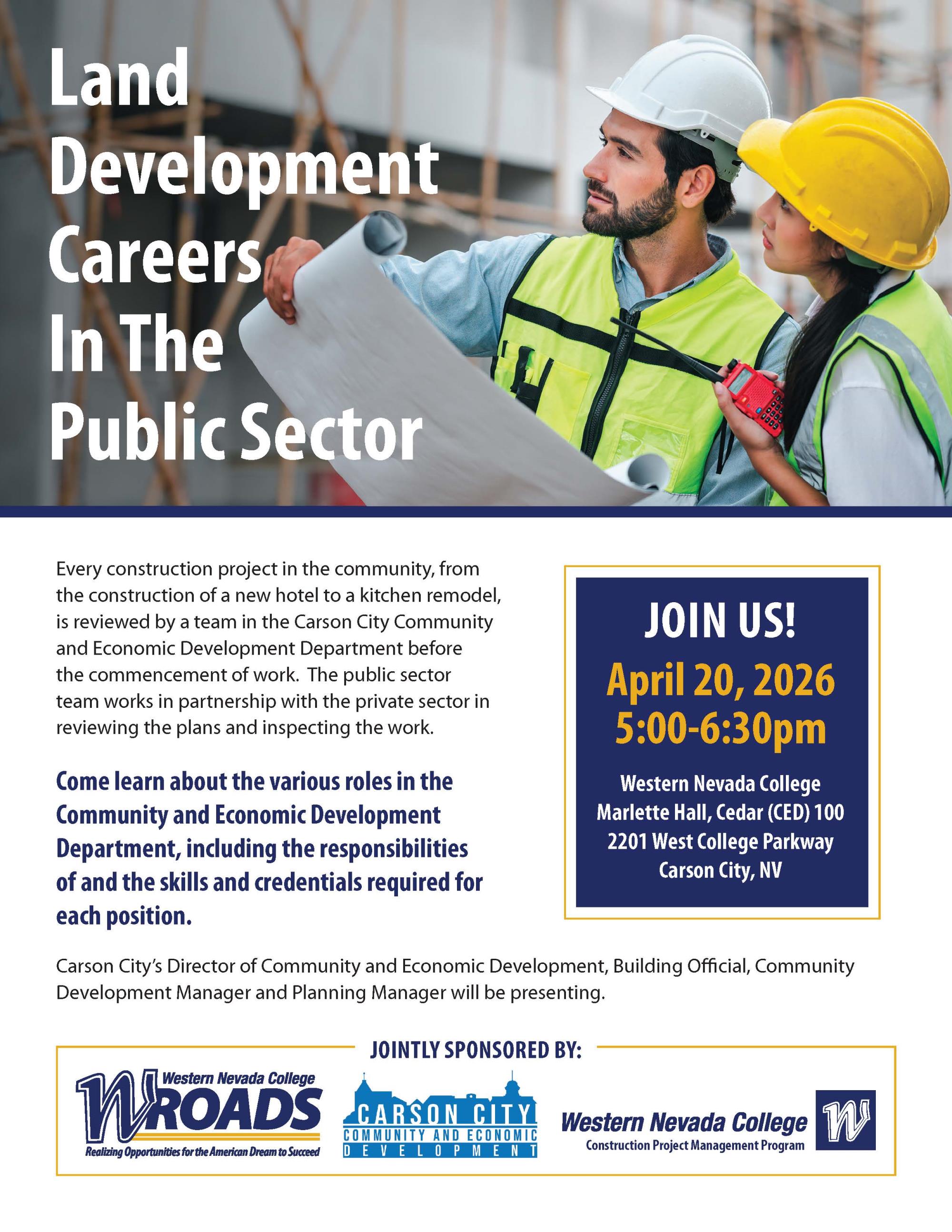 Join us on April 20, 2026 from 5:00 - 6:30pm at Western Nevada College to learn about