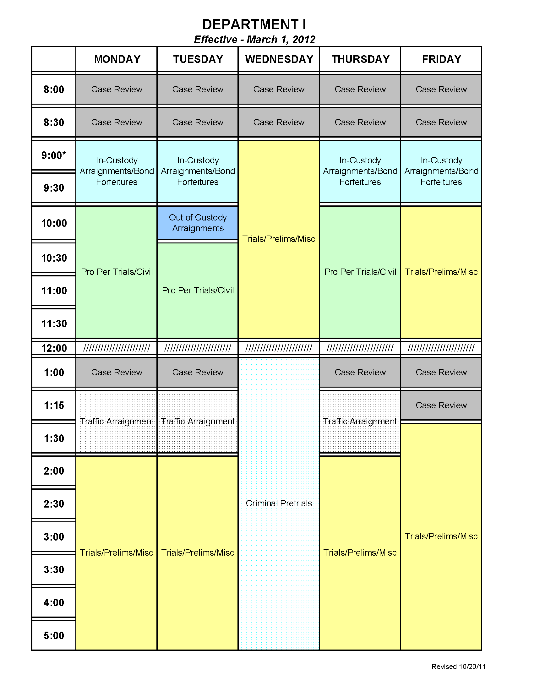 Court Calendar Dept. I