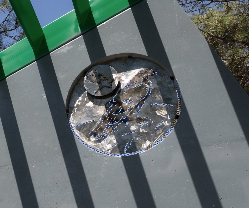The bright sun over snowcapped mountains is based on the seal of the Territory/ State of Nevada. Originally designed in 1864, The two trails of smoke from the train and the mill flow in different directions - it was said that Mark Twain had persuaded the designer, his brother Orion Clemens, to include this anomaly as a prank. This error was later corrected on the official seal but I’ve left it on my design. I removed some other elements from the original design to include more of our natural flora including native sage and pine. Prior to being its own territory, Nevada was part of the Utah Territory and before that it was part of Mexico. To commemorate this part of our history, I depict an eagle inspired by the eagle on the Mexican flag, but instead of carrying a snake, our eagle, one of many eagles flying around the Carson City area, dons a bundle of sage in bloom. This sagebrush design is inspired by the flowers that appear on our state flag.